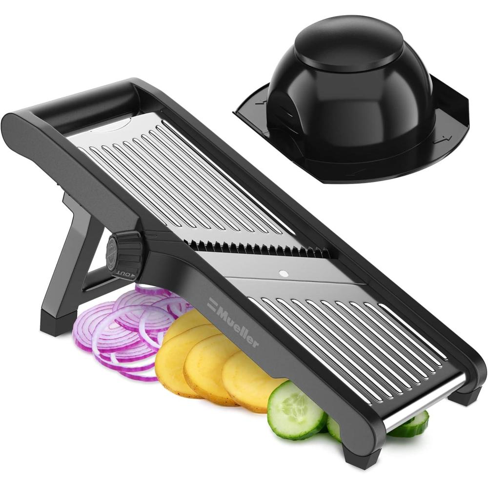 Don’t miss out on our limited-time offer: buy Mueller Austria Mandoline Slicer for Kitchen, Adjustable Vegetable Chopper, Fruit, Cheese Grater, Potato Chips Slicer – Black(Stainless Steel), get {accessory} 50% off!