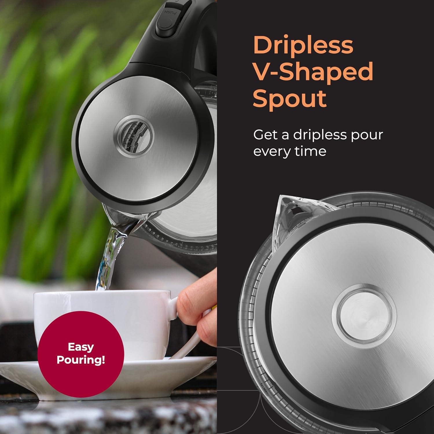 Mueller Living Electric Kettle, Electric Tea Kettle for Boiling Water, 1500W SpeedBoil with Automatic Shutoff, 1.8L Cordless with LED Light, Borosilicate Glass Tea Kettle Pot Water Heater, BPA Free(1.5 Liters)