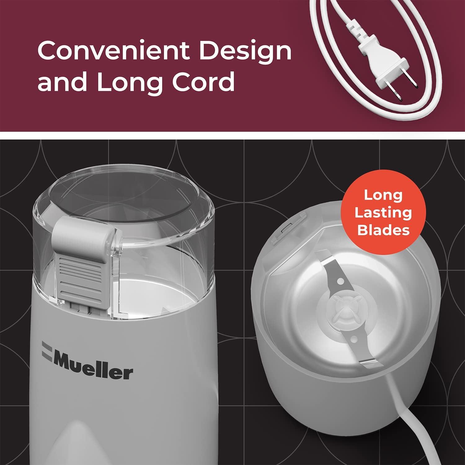 imageMuellerLiving Electric Coffee Grinder for Spice Nut Herbs and Coffee Beans Sharp Blade Stainless Steel  GrayWhite